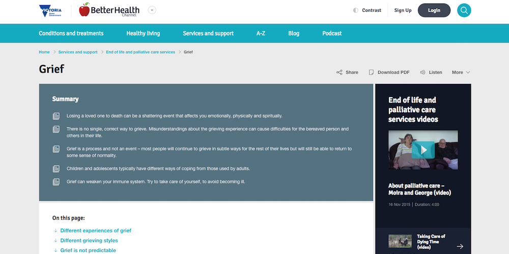 Grief is your response to loss, particularly in relation to the death of a loved one. Grief can affect your thoughts, feelings, behaviours, beliefs, physical health and relationships with others. Many people experience feelings of sadness, anger, anxiety, fear and numbness.