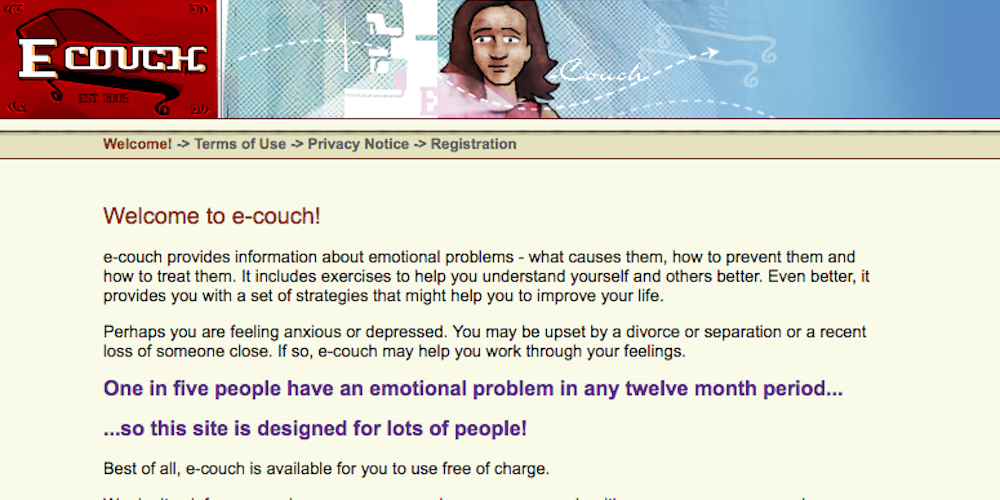 e-couch provides information about emotional problems - what causes them, how to prevent them and how to treat them. It includes exercises to help you understand yourself and others better. Even better, it provides you with a set of strategies that might help you to improve your life.