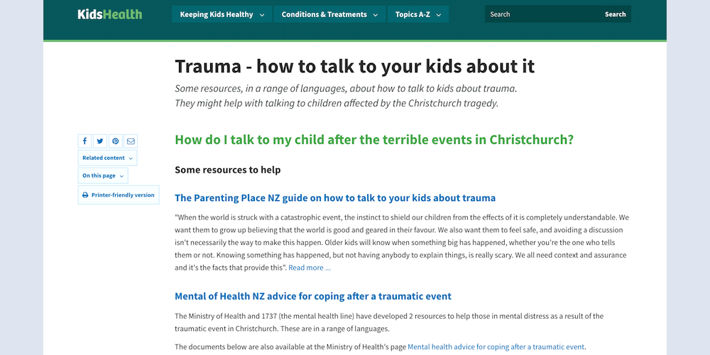 How to talk to your kids about trauma. Some resources about how to talk to kids about trauma - they might help with talking to children affected by the Christchurch tragedy.